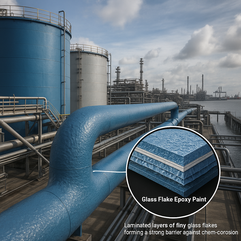 สำหรับโรงงานปิโตรเคมี ท่าเรืออุตสาหกรรม หรือโครงสร้างที่ต้องเผชิญกับสารเคมีรุนแรงทุกวัน ‘การเลือกสีเคลือบป้องกัน’ จึงเป็นหัวใจที่ไม่ควรมองข้าม หนึ่งในนวัตกรรมที่กำลังได้รับความนิยมสูงก็คือ สี Glassflake หรือ สีอีพ็อกซี่เกล็ดแก้ว (Glass Flake Epoxy Paint) ซึ่งได้รับการพัฒนาเพื่อให้ตอบโจทย์ความทนทานในสภาพแวดล้อมอุตสาหกรรมระดับสุดขีด