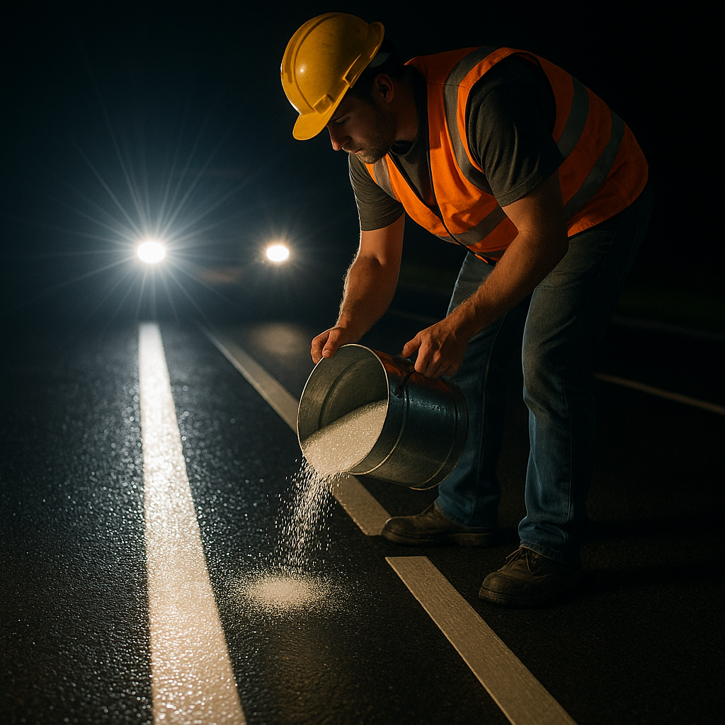 การผสมหรือโรยลูกแก้วลงในสีทาถนน ทำให้เส้นจราจรเห็นชัด สะท้อนแสงได้ทันที เพิ่มความปลอดภัยและมาตรฐานทุกสภาพแสง-อากาศ เหมาะสำหรับผู้รับเหมาตีเส้นถนนและลานจอดรถที่เน้นผลงานคุณภาพ และต้องการลดปัญหาภายหลังจากงานเสร็จ
