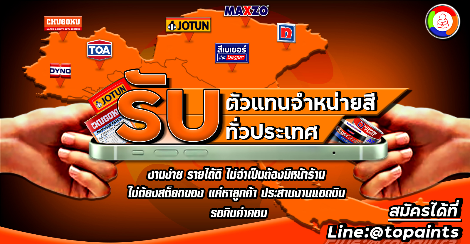#รับสมัครพนักงานด่วน หลายตำแหน่ง หลายอัตรา มีลูกค้าตลอด ( To-Paints ) บริษัทเราเป็นตัวแทนจำหน่ายสี แบรนด์ชั้นนำ