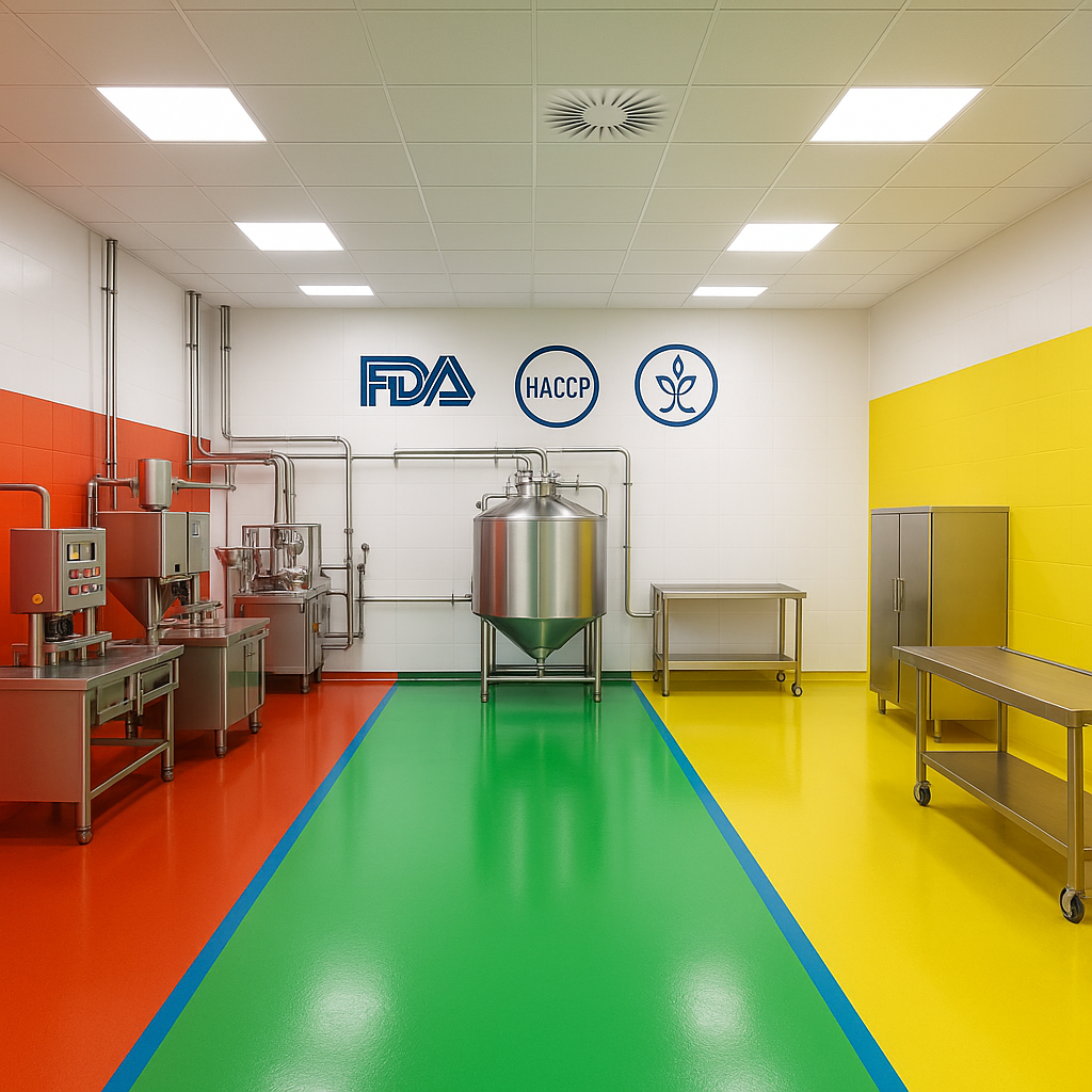การเลือกสีสำหรับโรงงานอาหารมีความสำคัญอย่างยิ่ง โดยเฉพาะอย่างยิ่งกับสี Food Grade ที่ได้รับการออกแบบมาเป็นพิเศษเพื่อให้ปลอดภัยต่อสุขภาพและสอดคล้องกับมาตรฐานระดับโลก สีในกลุ่มนี้จะไร้สารพิษ สารตกค้าง หรือองค์ประกอบที่ก่อให้เกิดอันตรายต่อร่างกาย แน่นอนว่าต้องมีการรับรองมาตรฐานอย่างถูกต้อง เช่น จาก FDA, USDA หรือองค์กรที่เกี่ยวข้อง